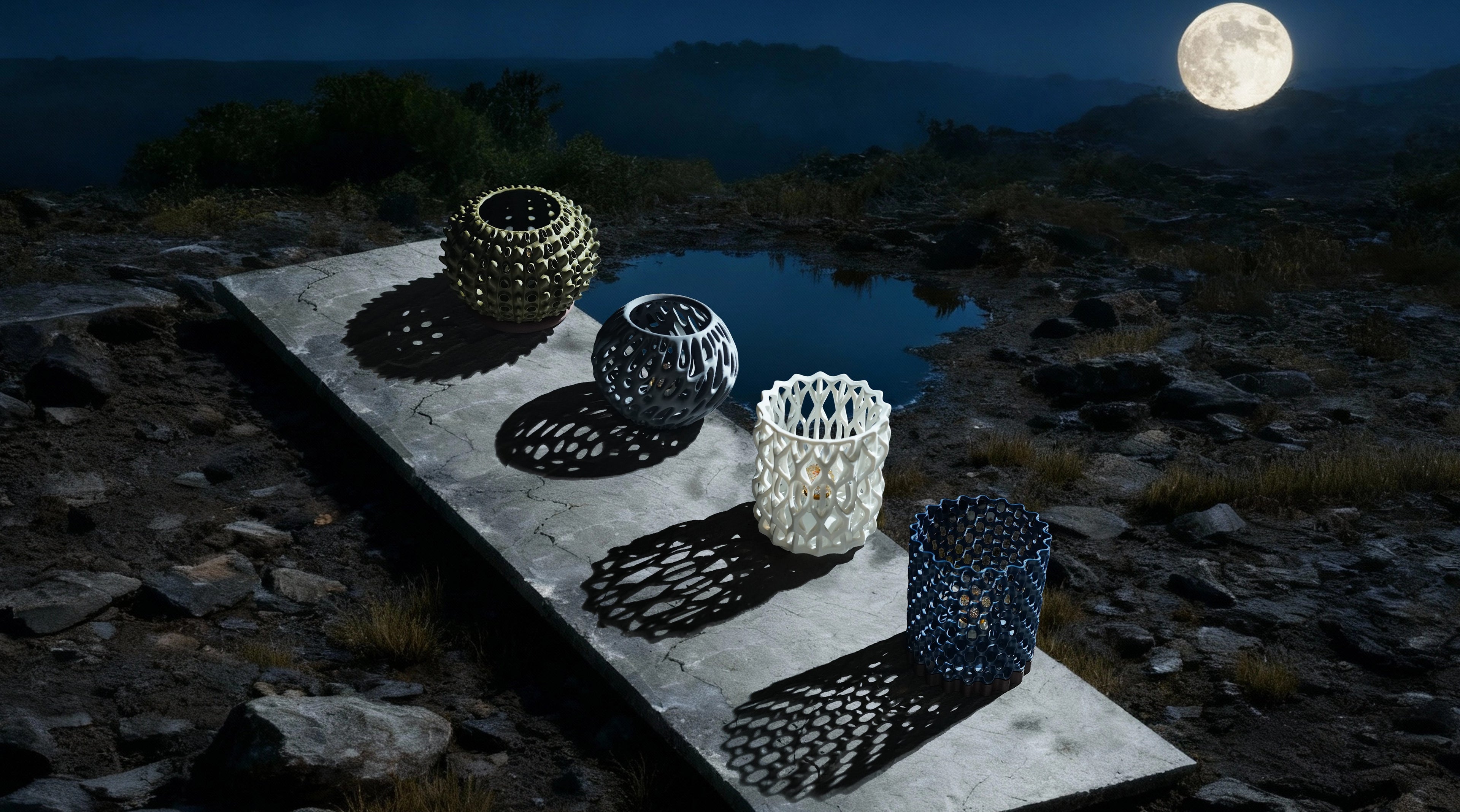 A study in elemental poetry. Art born from both light and form, each design turns illumination into presence.