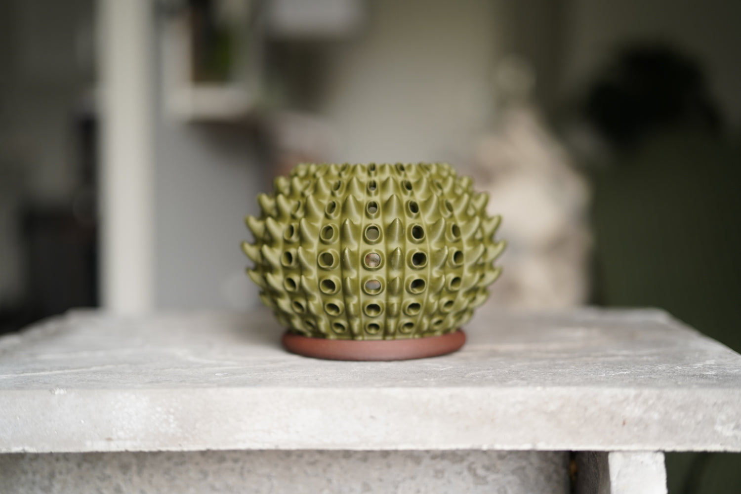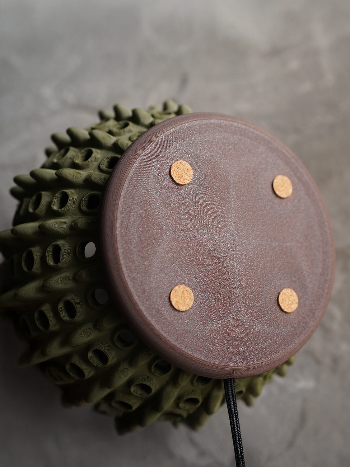 Formed from a hybrid filament of real wood fibers and biopolymers, this base balances natural texture with modern integrity. Each piece has subtle grain variation — no two are alike.