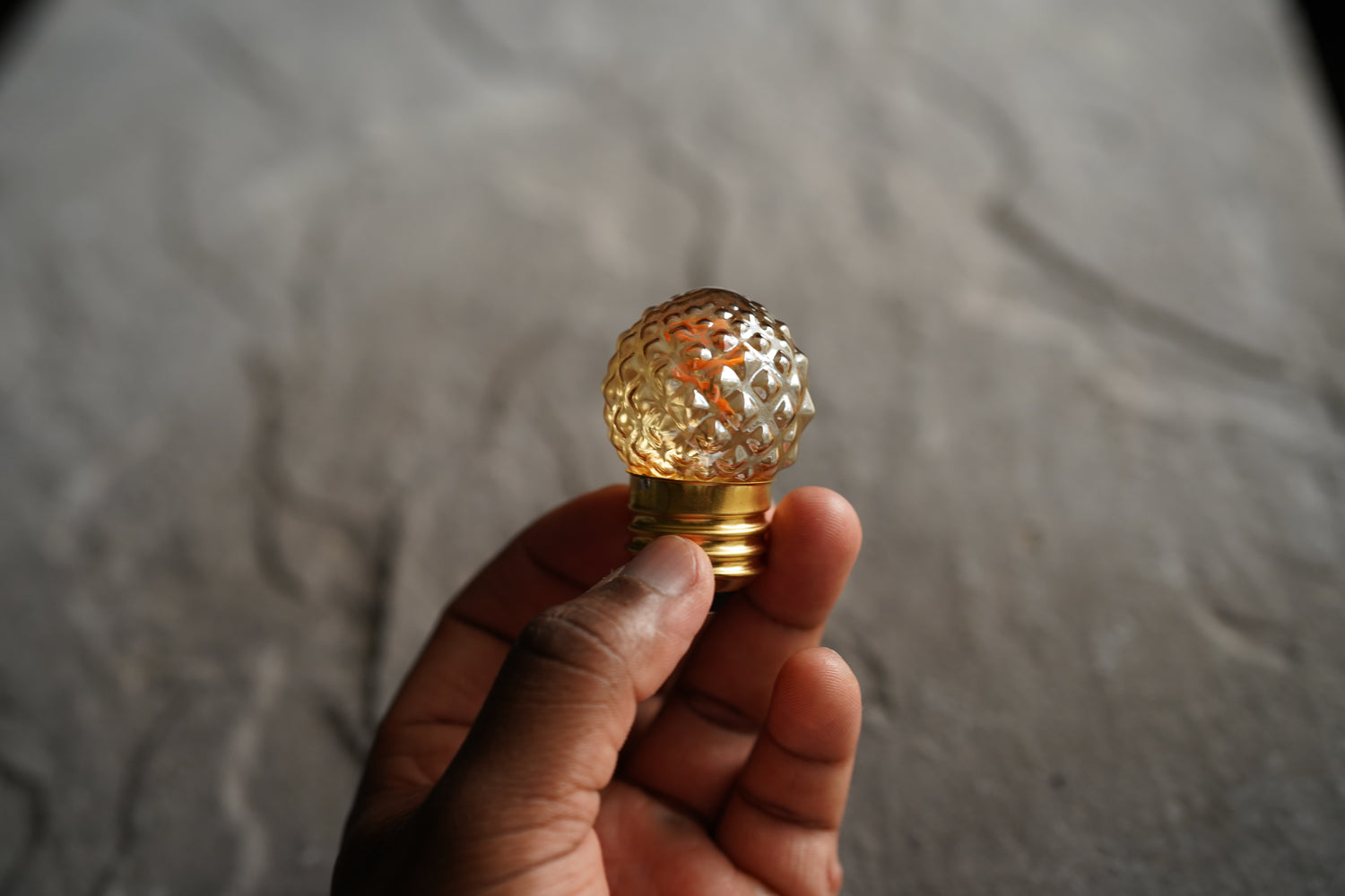 A vintage 10w spiral bulb housed in geometric amber glass, burning at a 2200k warmth. Chosen not just for illumination, but for emotion — soft, firelight tones that calm the space and the soul.