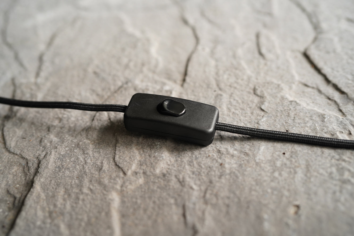Cloth-covered power cord with tactile softness and a toggle switch that’s satisfyingly analog. No gloss. No plastic sheen. Just clean, timeless control.