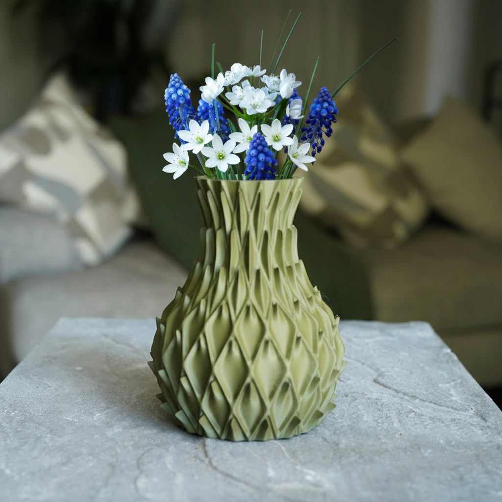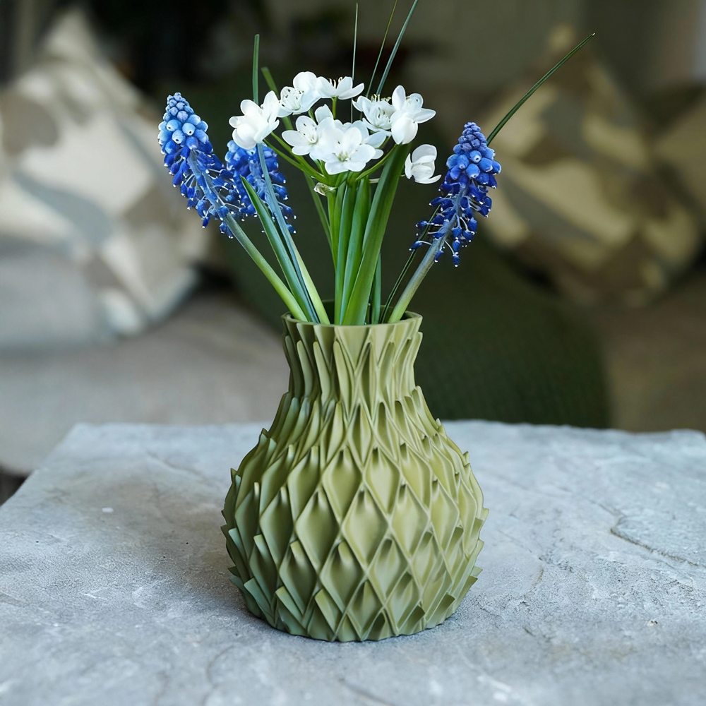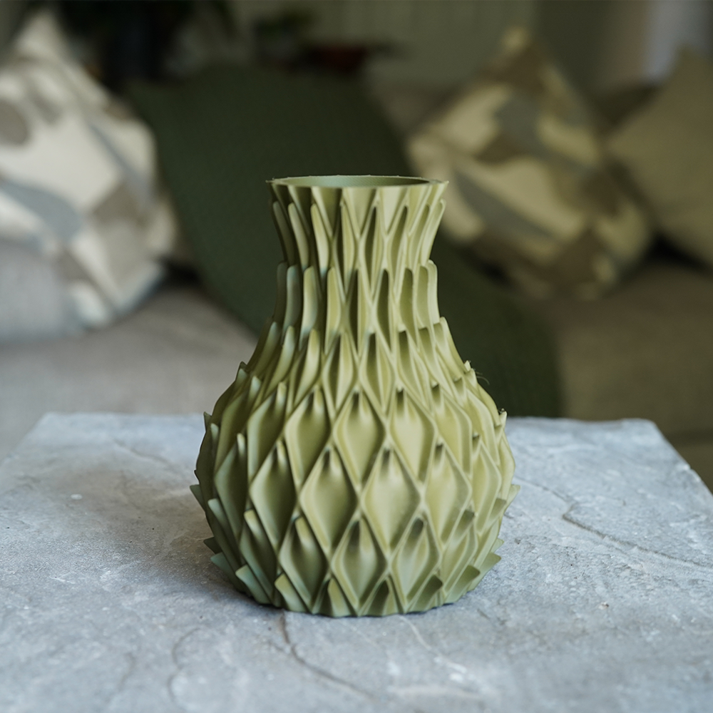 Gia evokes the geometry of desert thorns — deliberate, patterned, and exact. Light grazes its surfaces, catching every point and edge, revealing a quiet strength. A vase that commands presence without speaking loudly.